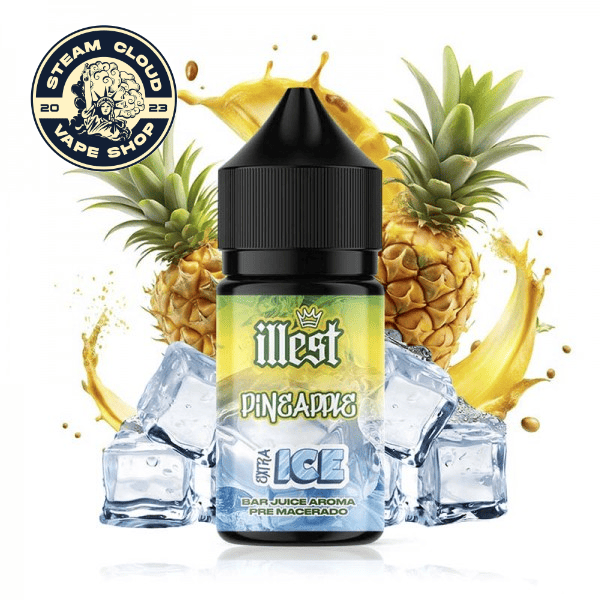 El Aroma Pineapple Extra Ice Illest 5ml (Mini Longfill) es una combinación explosiva de piña tropical madura con un potente efecto ice, diseñado para ofrecer una experiencia fresca, intensa y muy refrescante en cada calada.